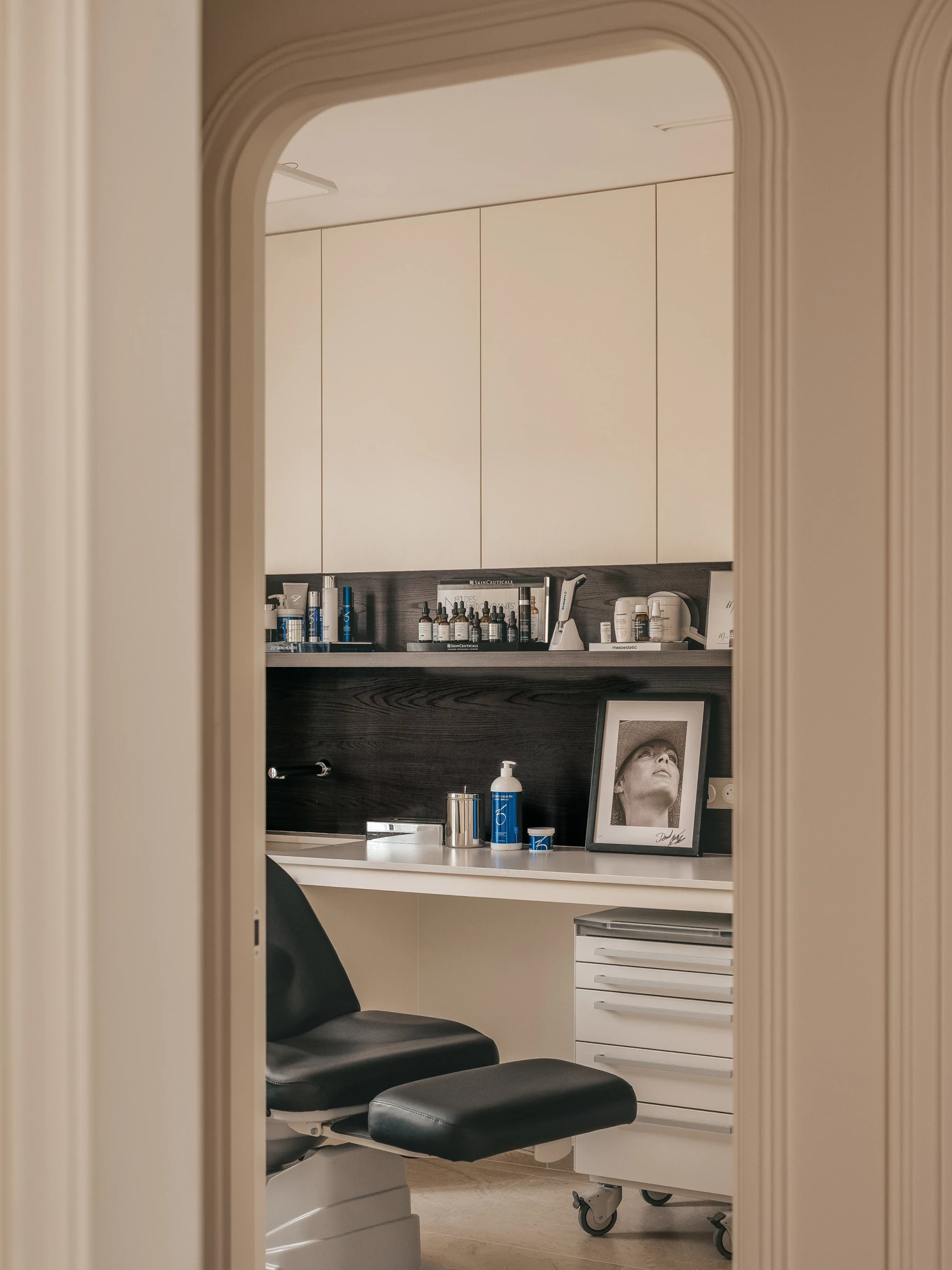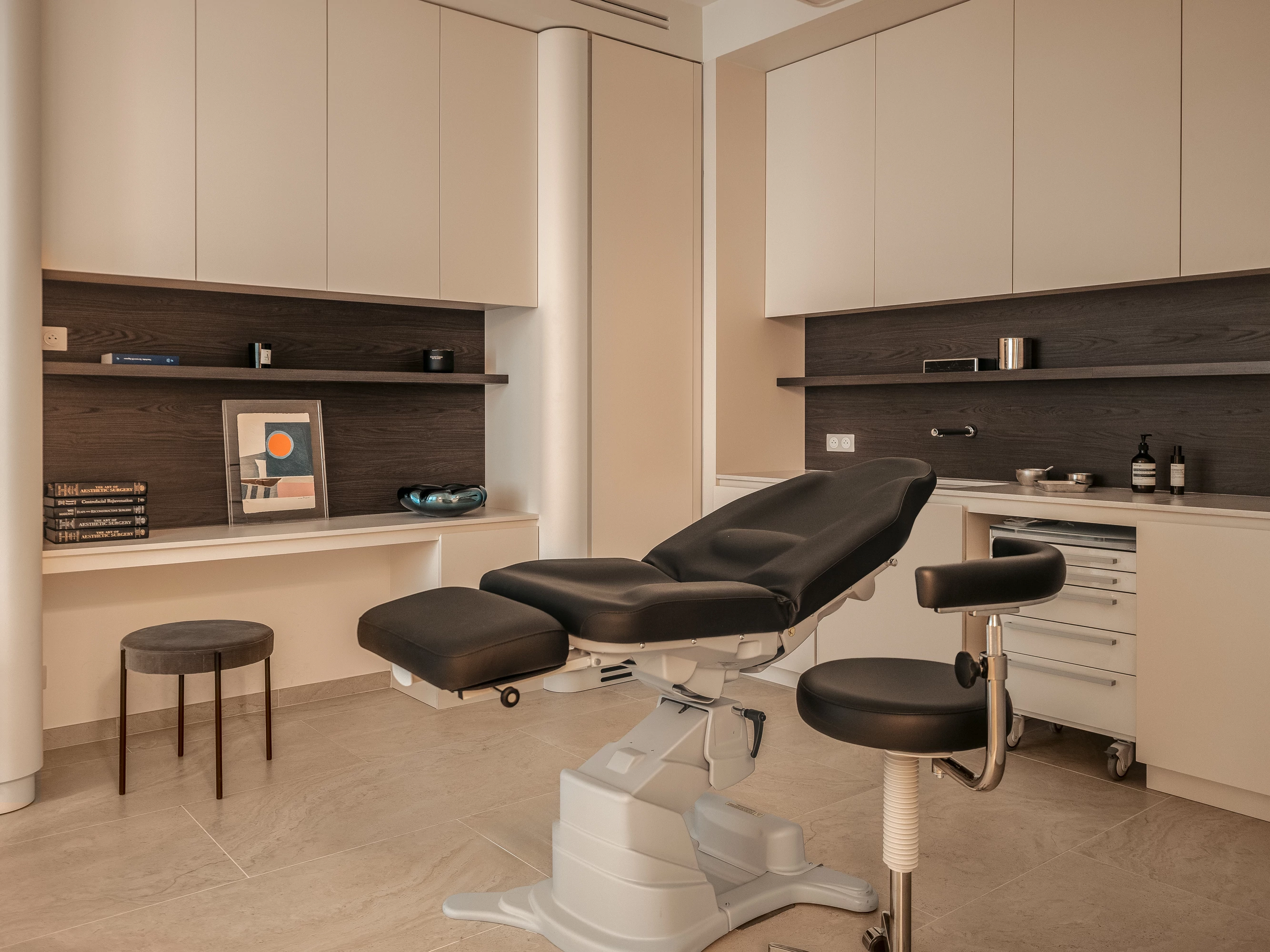 Les cabinets de consultation prolongent cette intention : loin de l’esthétique clinique, ils prennent la forme de bureaux privés, feutrés et intimistes, favorisant une relation de confiance et de sérénité. Chaque espace participe à cette sensation d’appartenance, comme si l’on pénétrait dans la maison du chirurgien lui-même.