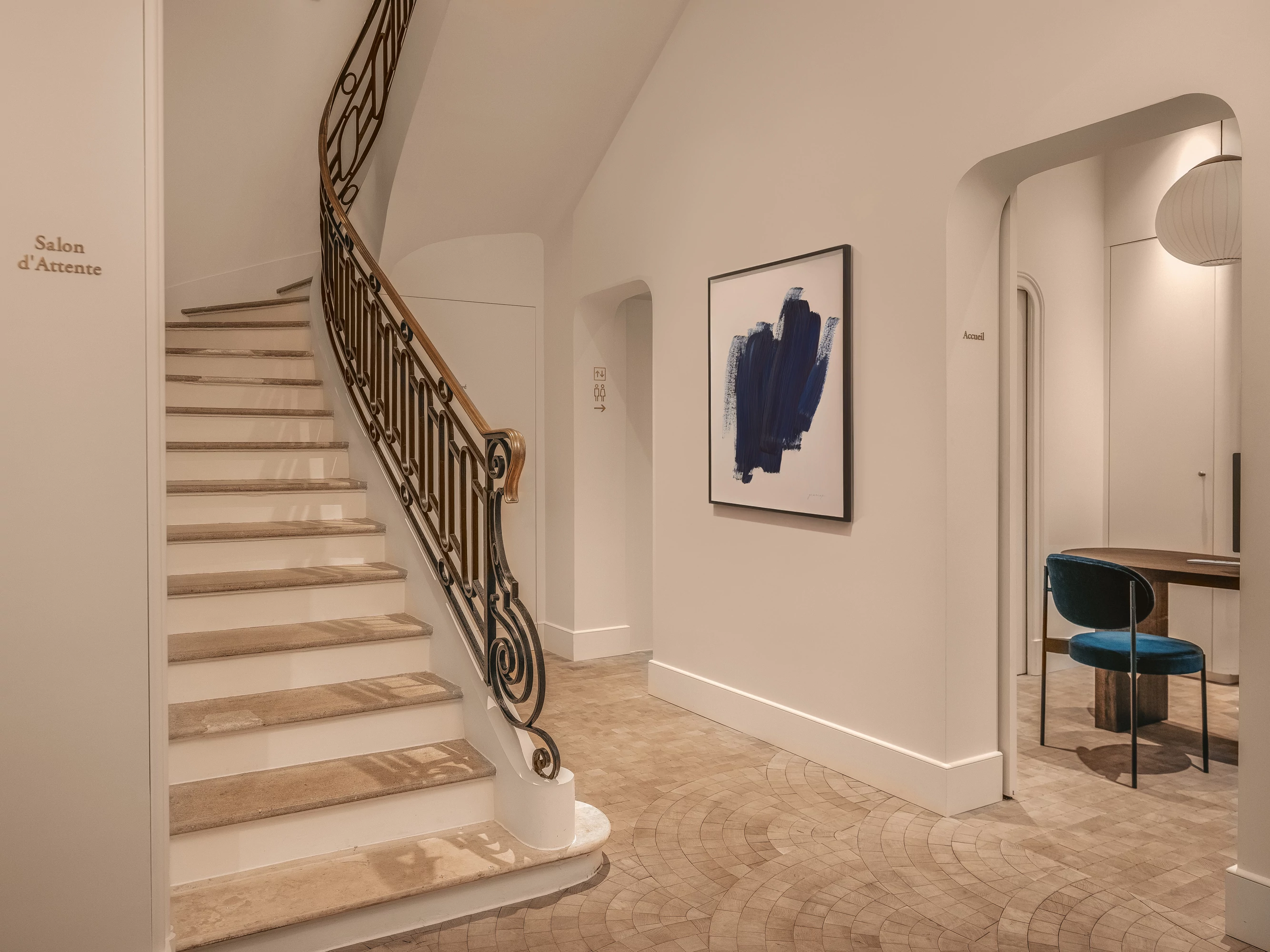 Le projet a donc consisté à redonner une lecture cohérente au lieu, en s’appuyant sur son époque de construction et en proposant une intervention contemporaine, sobre et respectueuse de son caractère. Pour sa nouvelle vie, cet hôtel particulier s'est transformé en cabinet de chirurgie esthétique. Une maison dédiée à la beauté du visage et au bien vieillir.
