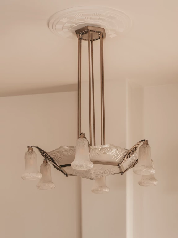 Un travail de recherche a été effectué avec les clients, pour dénicher des pièces de verrerie traditionnelle française des années 1920, créées par Leleu, Degué ou les frères Muller.