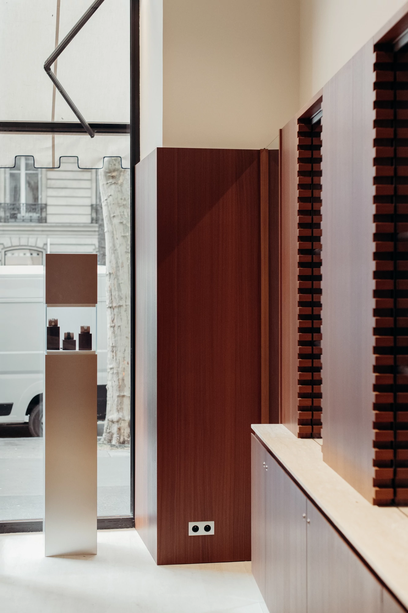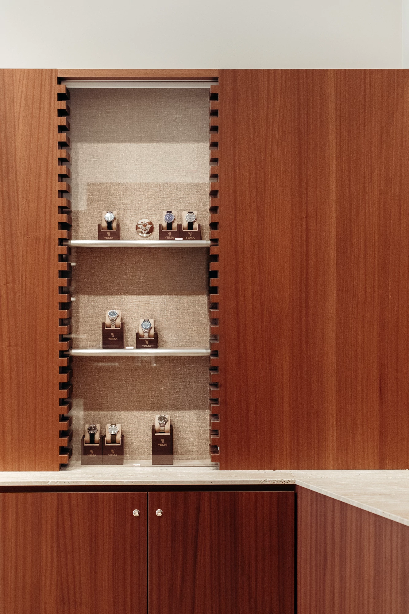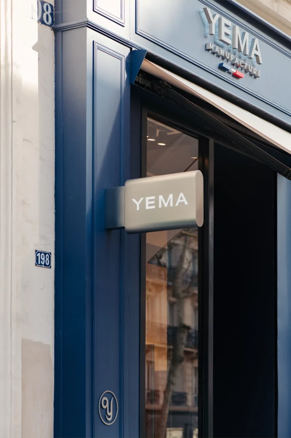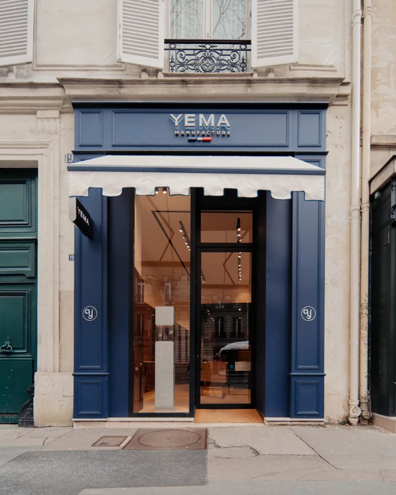 Yema est une maison française située à Morteau dans le Doubs, berceau de l'horlogerie française. Pour leur première boutique, ils se sont installés boulevard Saint Germain, au cœur du 6ème arrondissement de Paris. L'histoire de cette marque indépendante familiale, et de sa région d'implantation (l'est de la France, tout près de la Suisse) devait se ressentir dans l'ambiance générale du lieu.